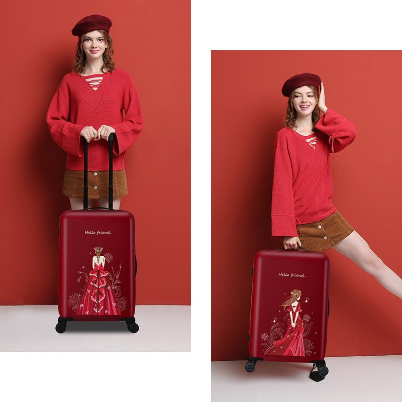 AJI Noble Princess Women Carry Ons Luggage Travel Suitcase Rolling Luggage Trolley Case PC Mute Spinner Wheels TSA Lock A7012