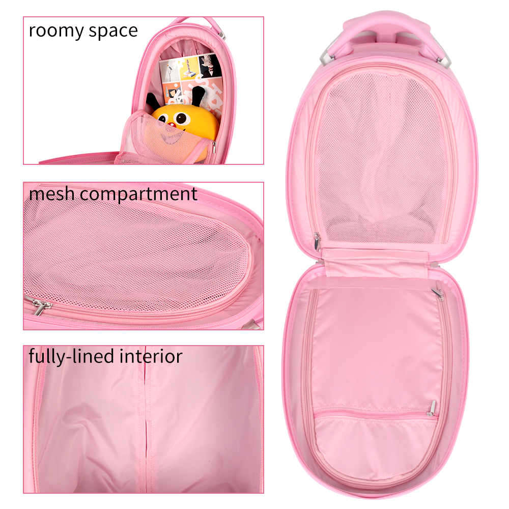 Kids Luggage with Wheels for Girls Pink Princess Hard Shell 16 Inch Upright Rolling Suitcase Cute Cartoon Printed PC+ABS NEWCOM